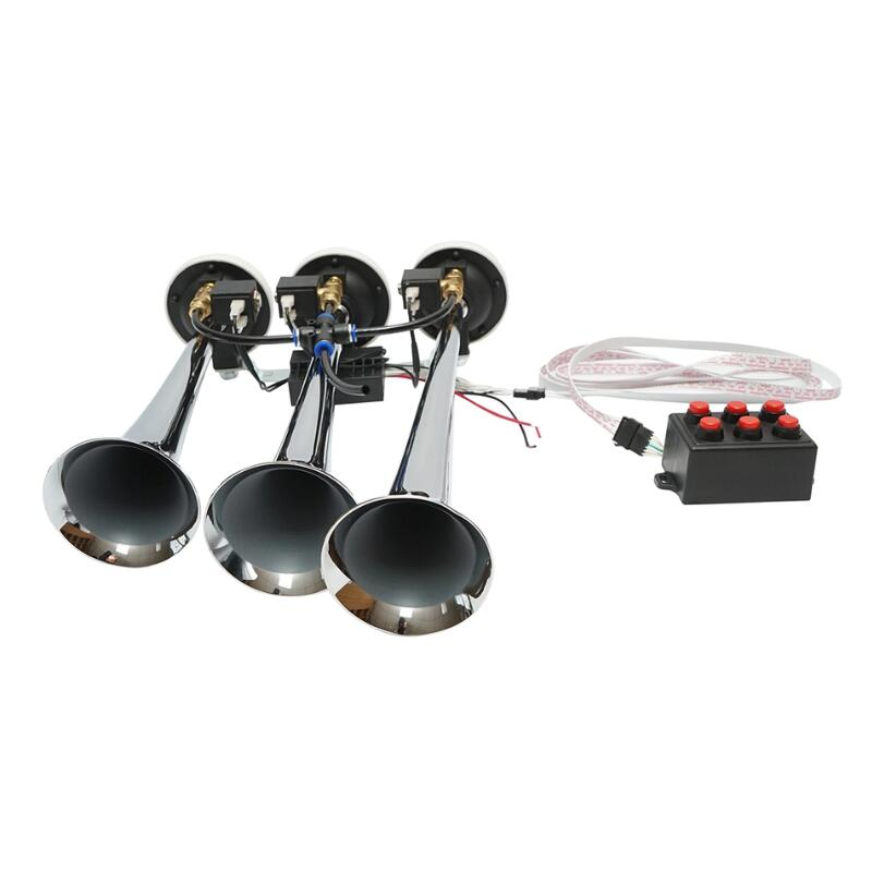 Claxon Muzical Pneumatic 145 dB – 3 Goarne Cromate cu 6 Melodii (12V/24V)