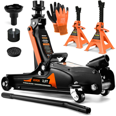 Verda Set Cric hidraulic de 2,5 tone + doua suporturi cu o capacitate de ridicare de 3T
